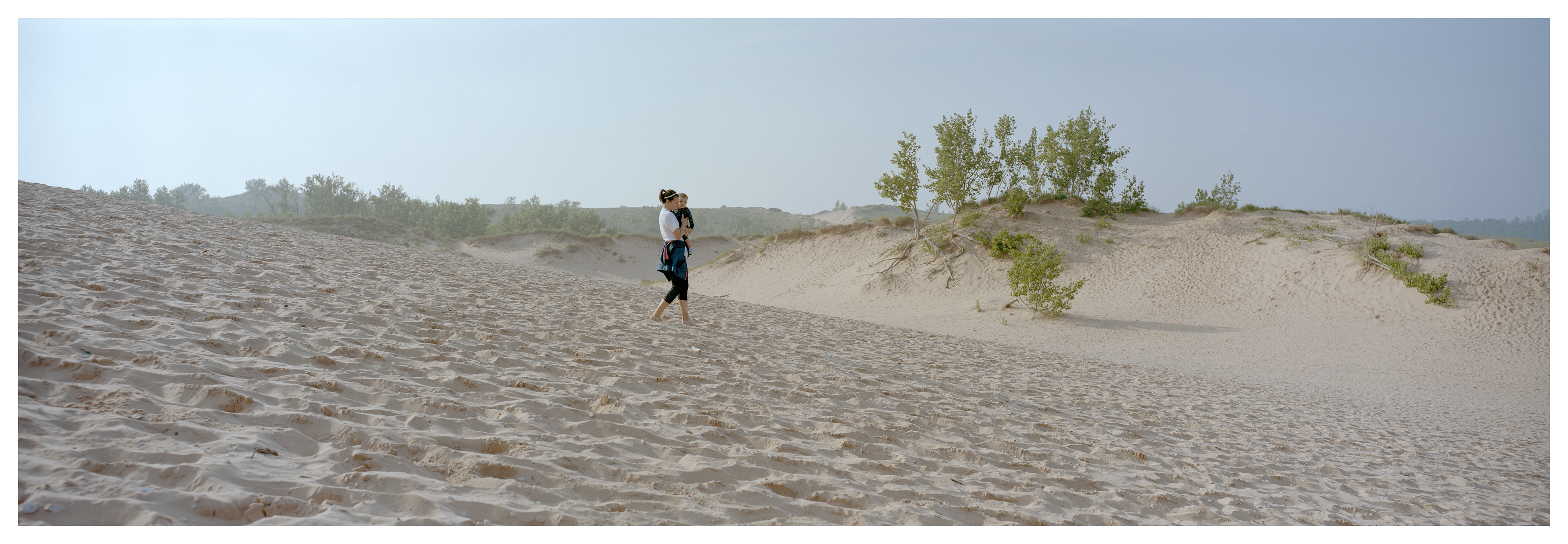 Trekking down Sleeping Bear Dunes in Michigan during the Canadian wildfires.